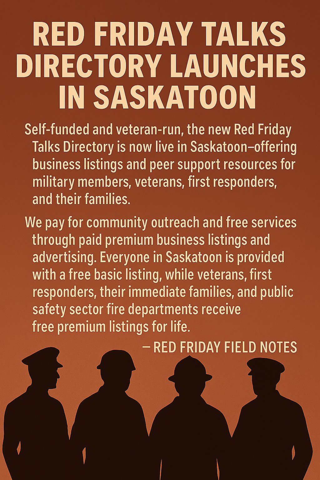 Red Friday Talks Launches Saskatoon Pilot to Support Firefighters, Veterans, and First Responders